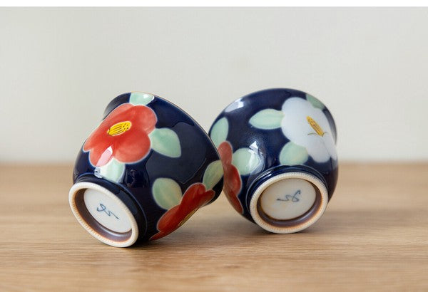 In Japan, the camellia (tsubaki) is considered an auspicious flower symbolising perseverance, vitality, and good fortune. Its ability to bloom proudly even through winter makes it a symbol of strength and resilience, making this set not only visually stunning but also culturally meaningful.